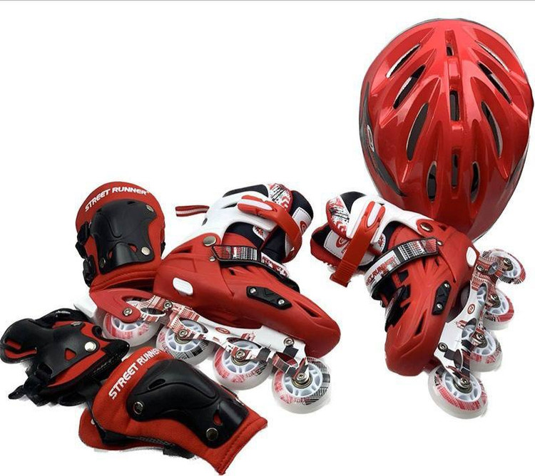 و از همه بهتر، وجود لوازم ایمنی کامل (کلاه، زانو، آرنج و دستکش) در کنار اسکیت است.